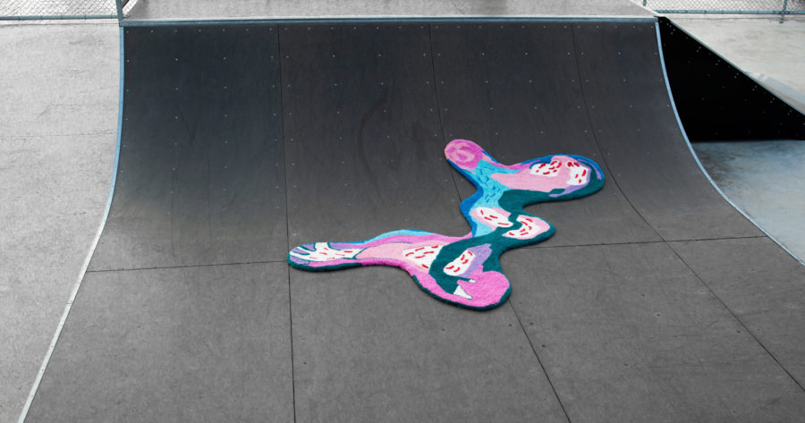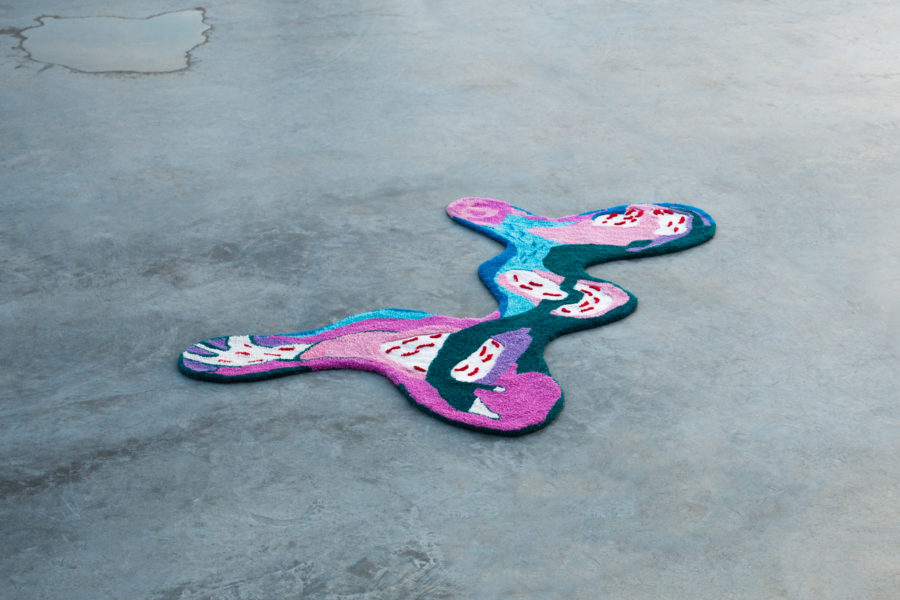 Ria Alexandrou (b.1990, Greece) is a visual artist based in Cyprus, she graduated from the Athens School of Fine Arts in 2014, she had two solo exhibitions (2016), (2021) and presented her works in various group exhibitions in Cyprus and abroad. AKI rug B is an organic formed rug, which in combination with the elements that surround it create different shapes, as a negative space drawing on the floor. Aiming to embrace the unexpectancy of the organic, the AKI rugs is a series of flat cut-out surfaces that inspire to both frame and mark new terrains on horizontal and vertical surfaces.