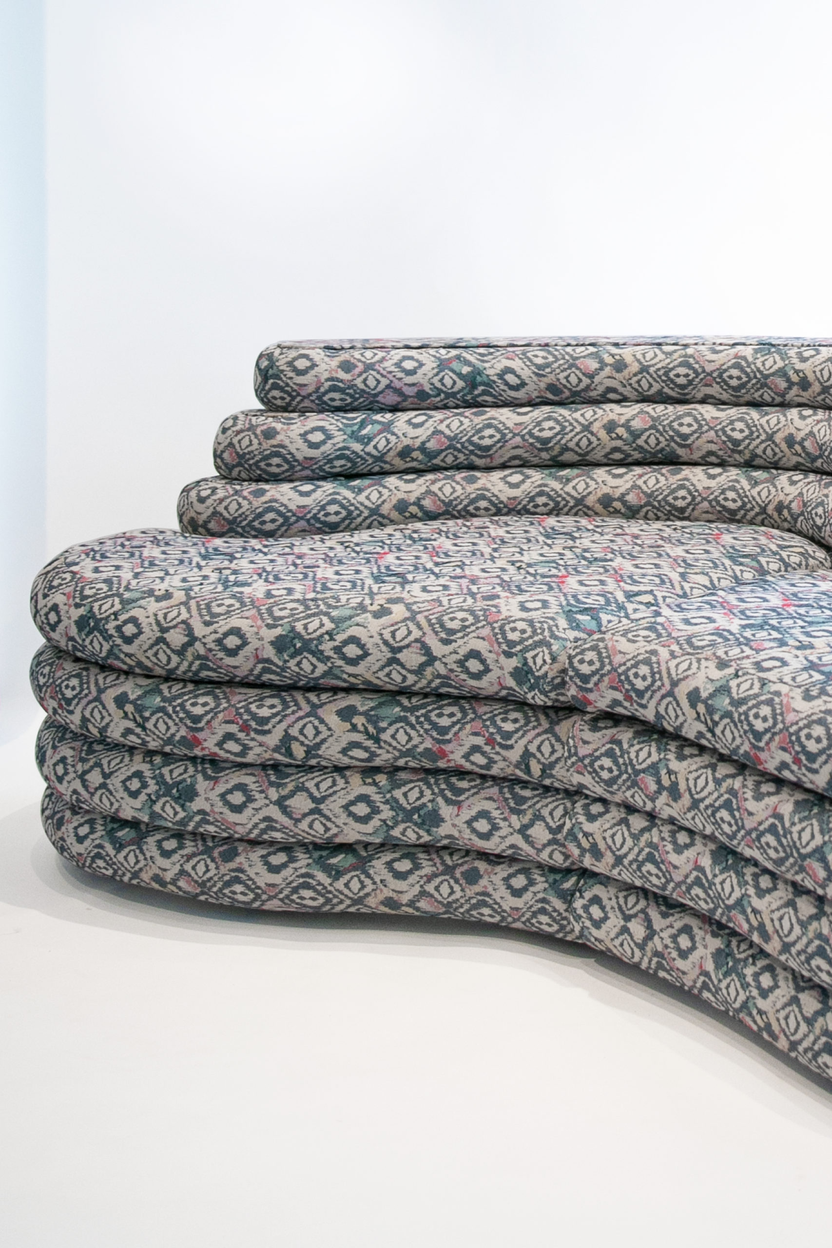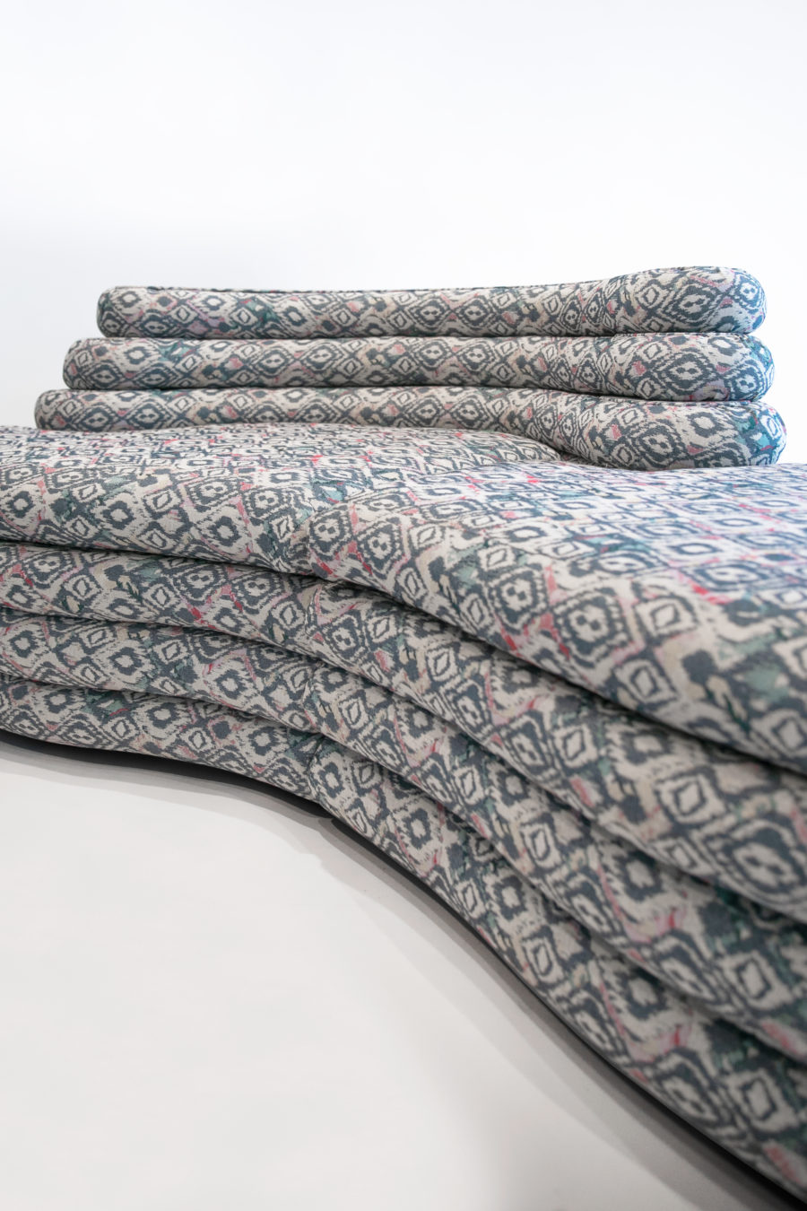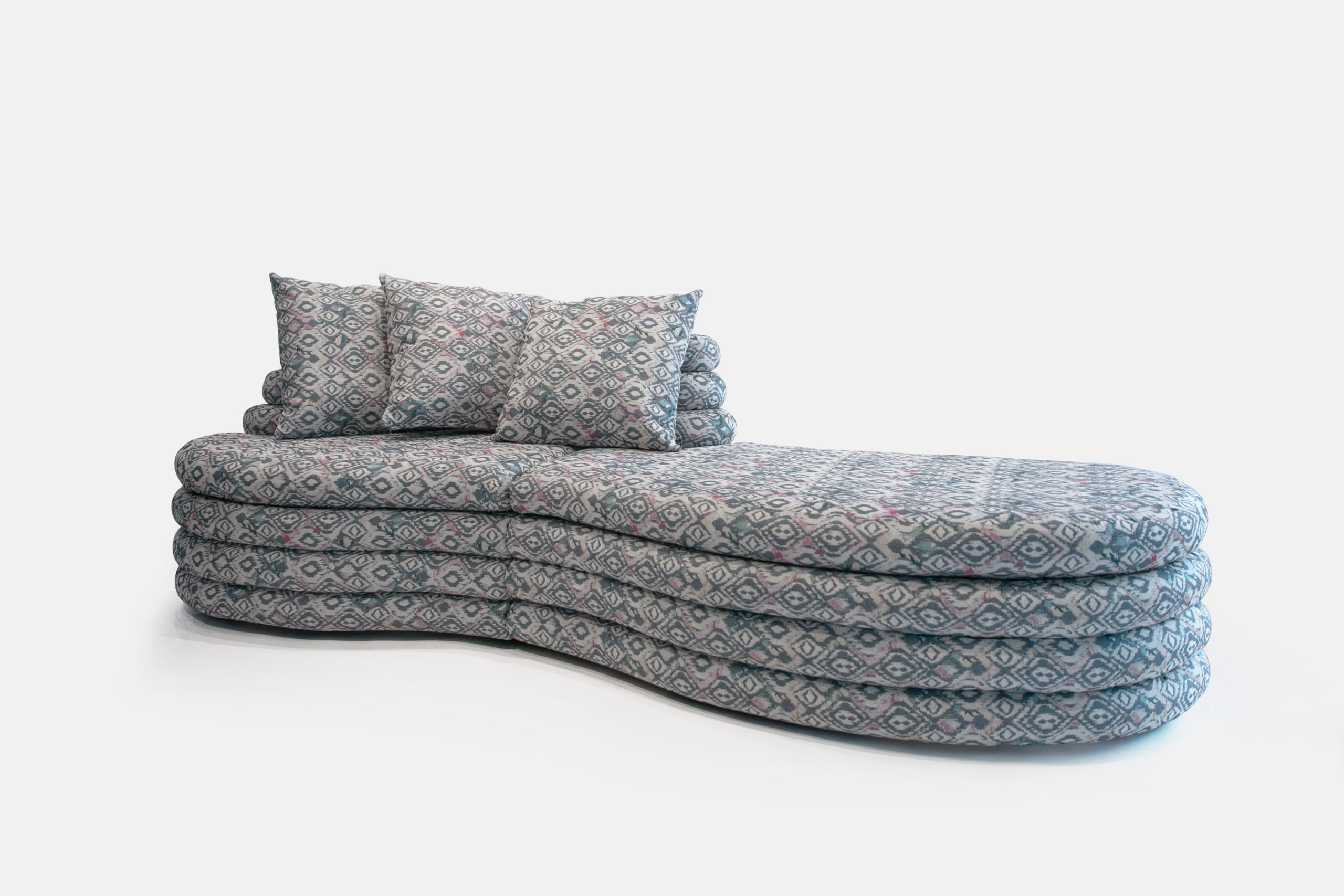 Evolved from the symbiotic design of its low table, this sofa piece surrenders to the movement of the cloud that shares its fluid design. This design piece allows for a functional distortion that organically takes the form of a comfortable space-hugging element. Coming in a deep sea blue that matches the elements of its shared design low table, this sofa is a comfortable host for up to 6 seats of varying depths to ensure maximum seating comfort on any lying posture.