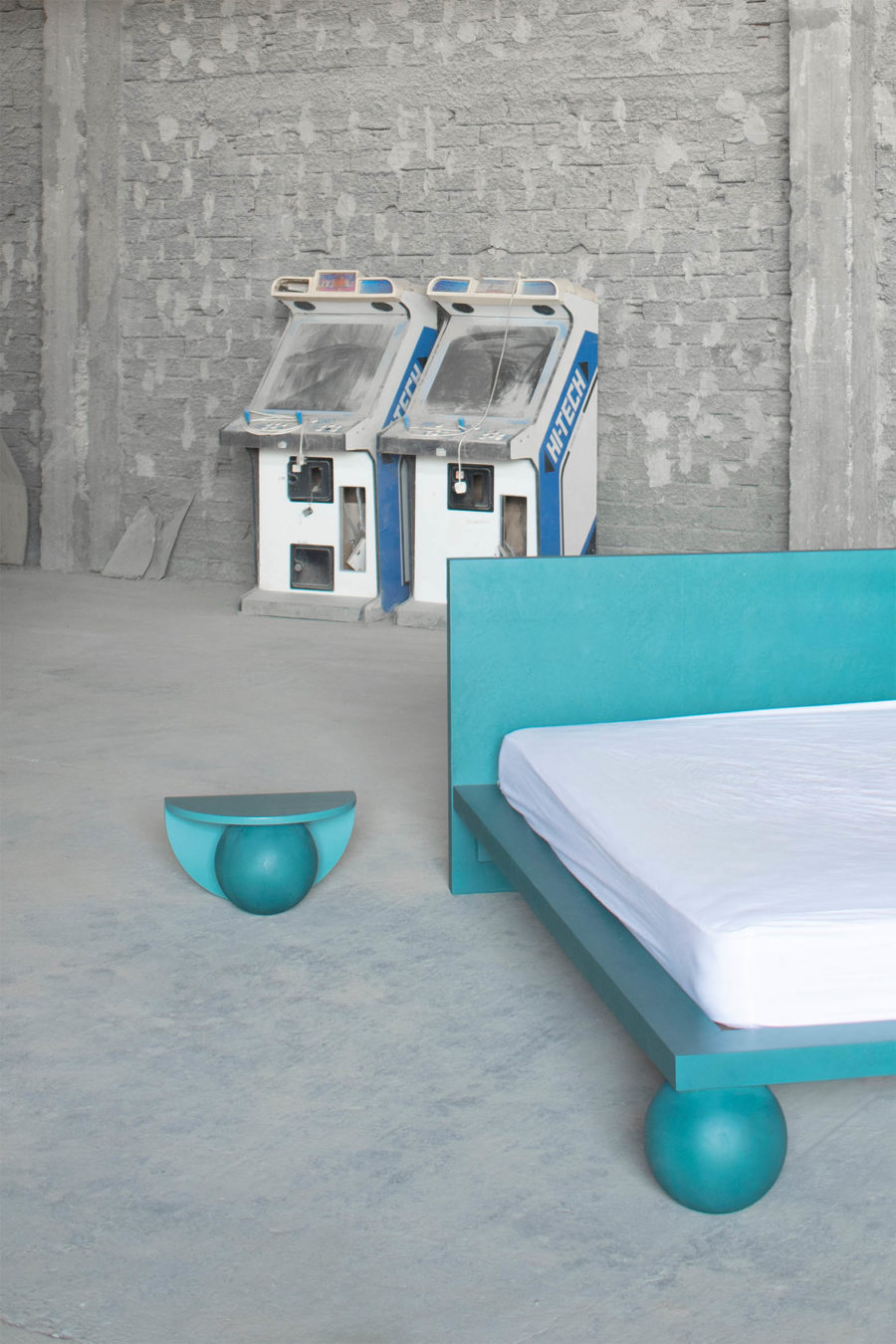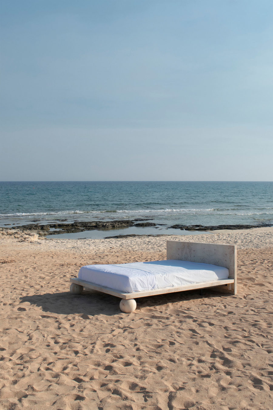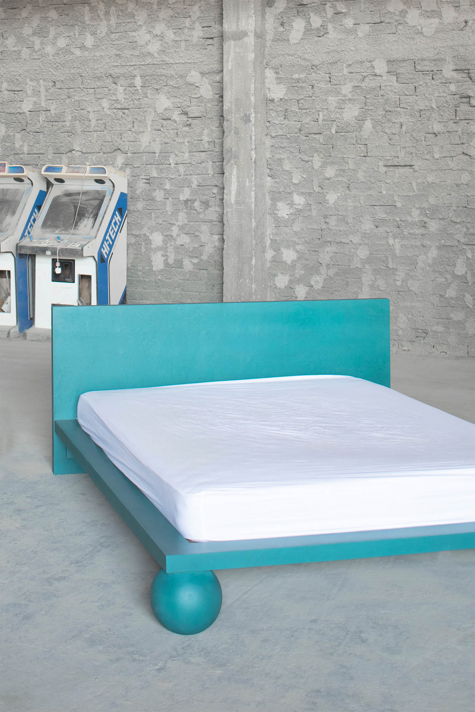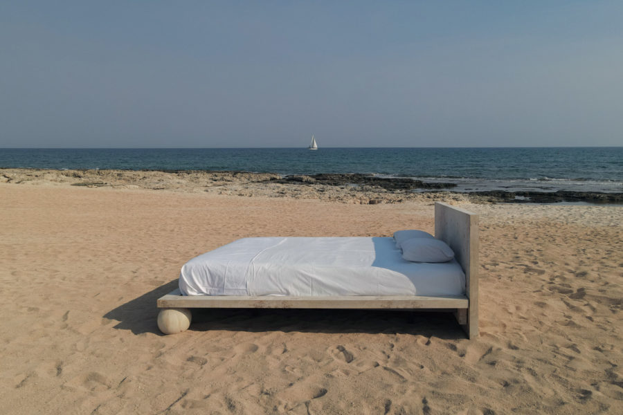 Dreaming is an essential concept in the process of designing this collection. Being no exception, the EPIFANIA bed becomes both the object and the result of conceptual dreaming. Resting on the intersection of two perpendicular planes, supported by two wooden spheres, the design results in a bold queen-size bed aimed to be the centerpiece of the space. Ideal for higher mattresses, the bed comes in all petrol green lacquered wood finish or natural burl veneer in beige tones.