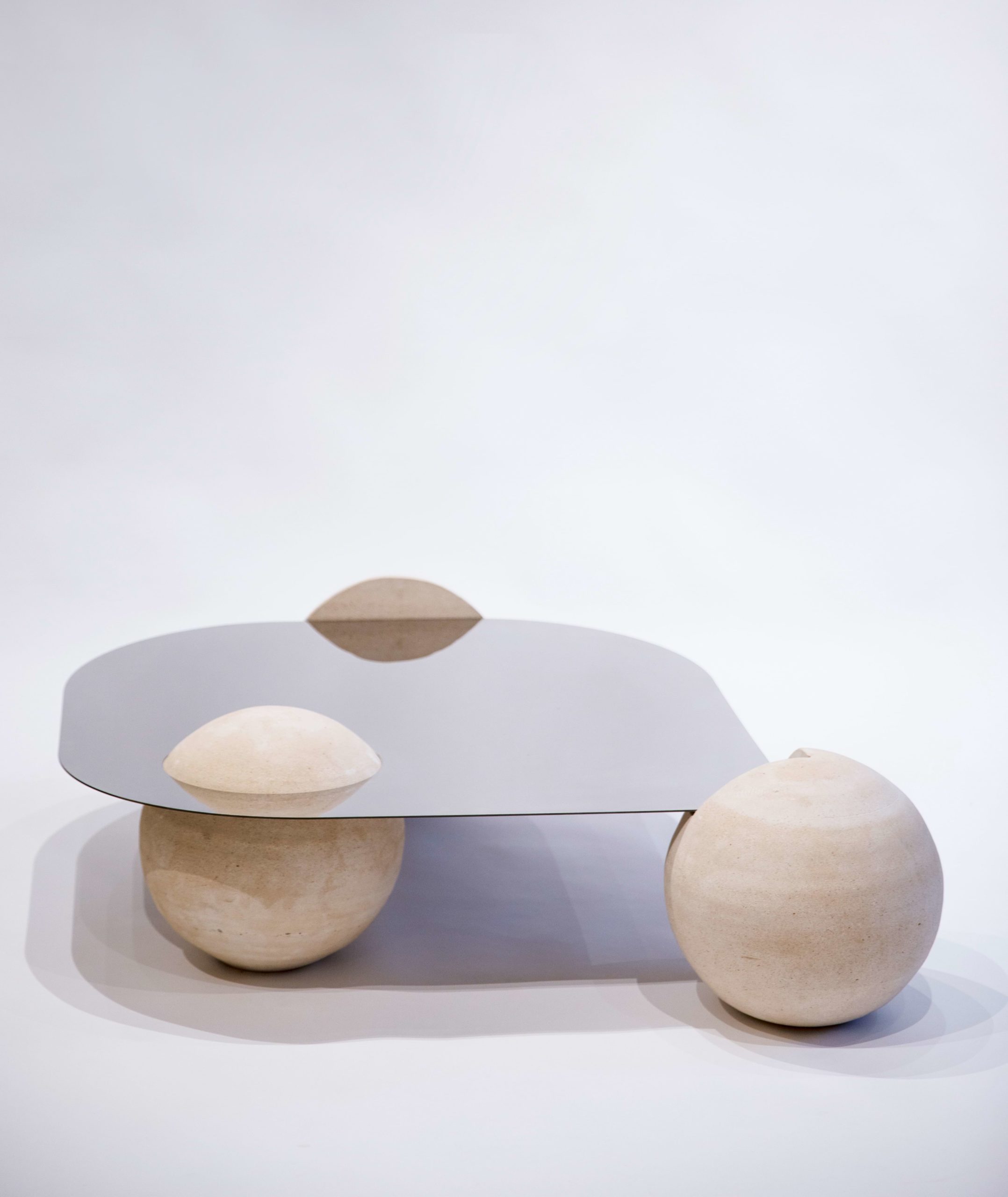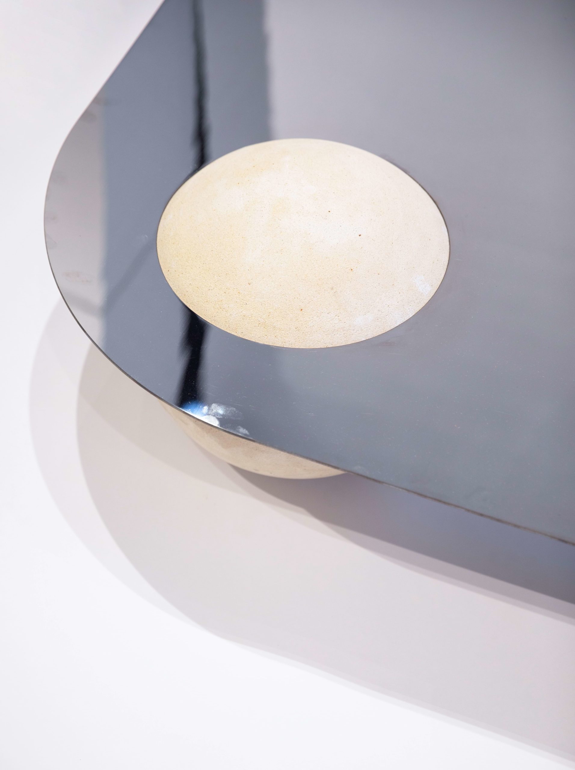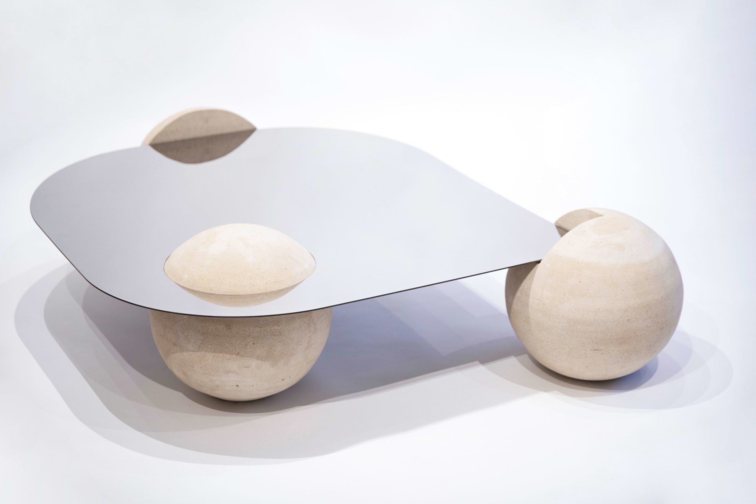 silver surface exudes modern elegance, while a constellation of rock spheres, defying gravity, adds an earthly touch. This table is a visual symphony of light and shadow, seamlessly blending celestial grace with grounded beauty.