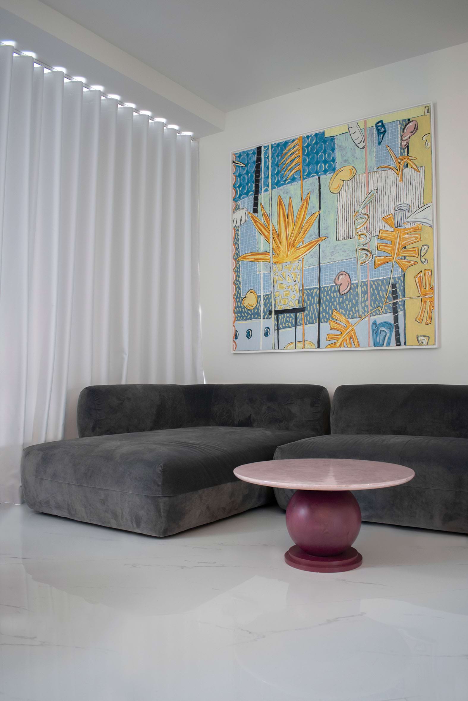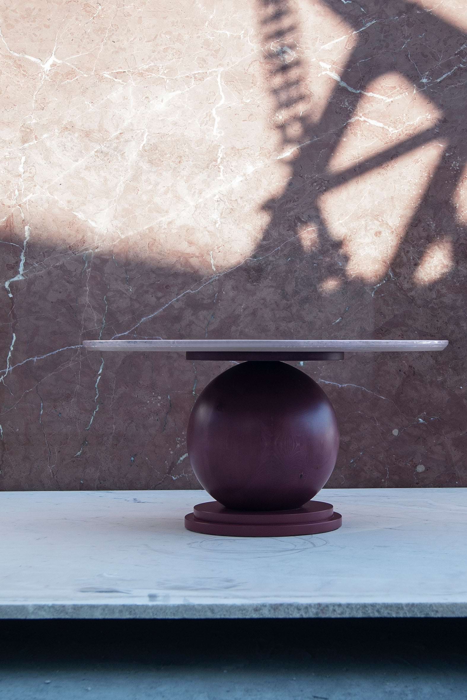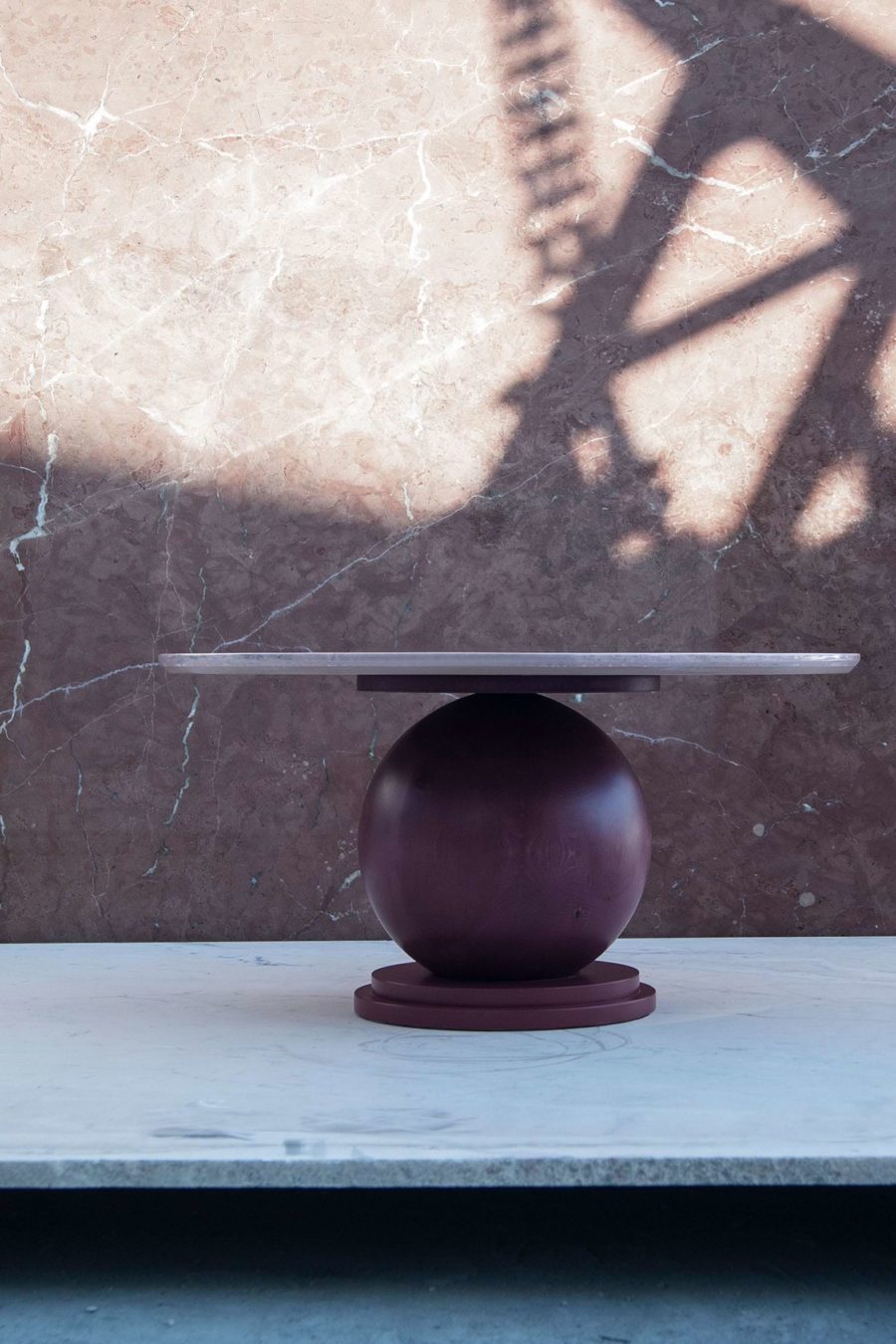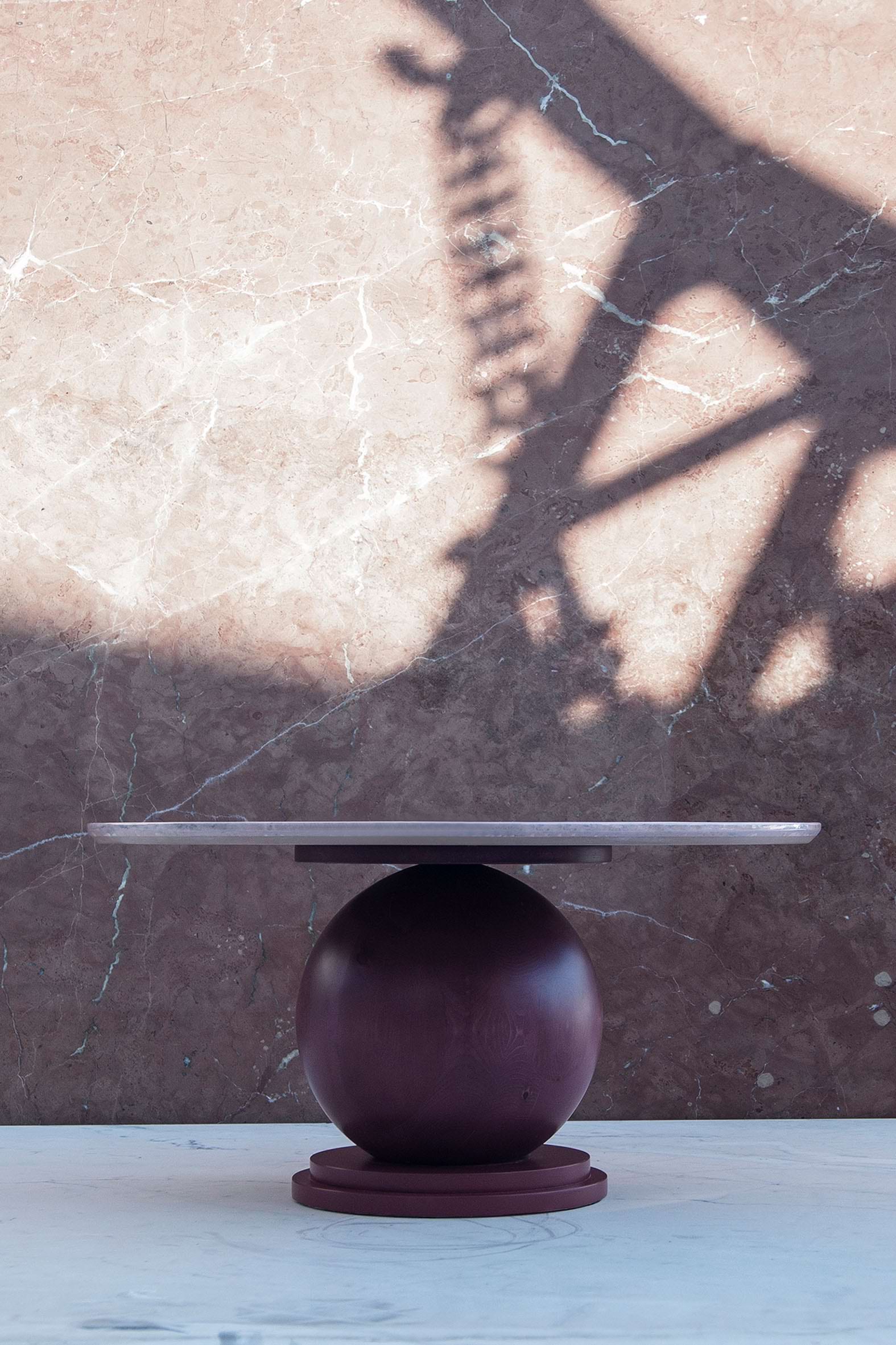 Proposed as a twin arrangement, these medium and low table pieces allow for flexible configurations responding to our need for adapting any modern living space daily. Used either as a twin composition or separated, coffee or side tables, dining or working desks, the SPHERE TWIN can meander in the space for any possible use.