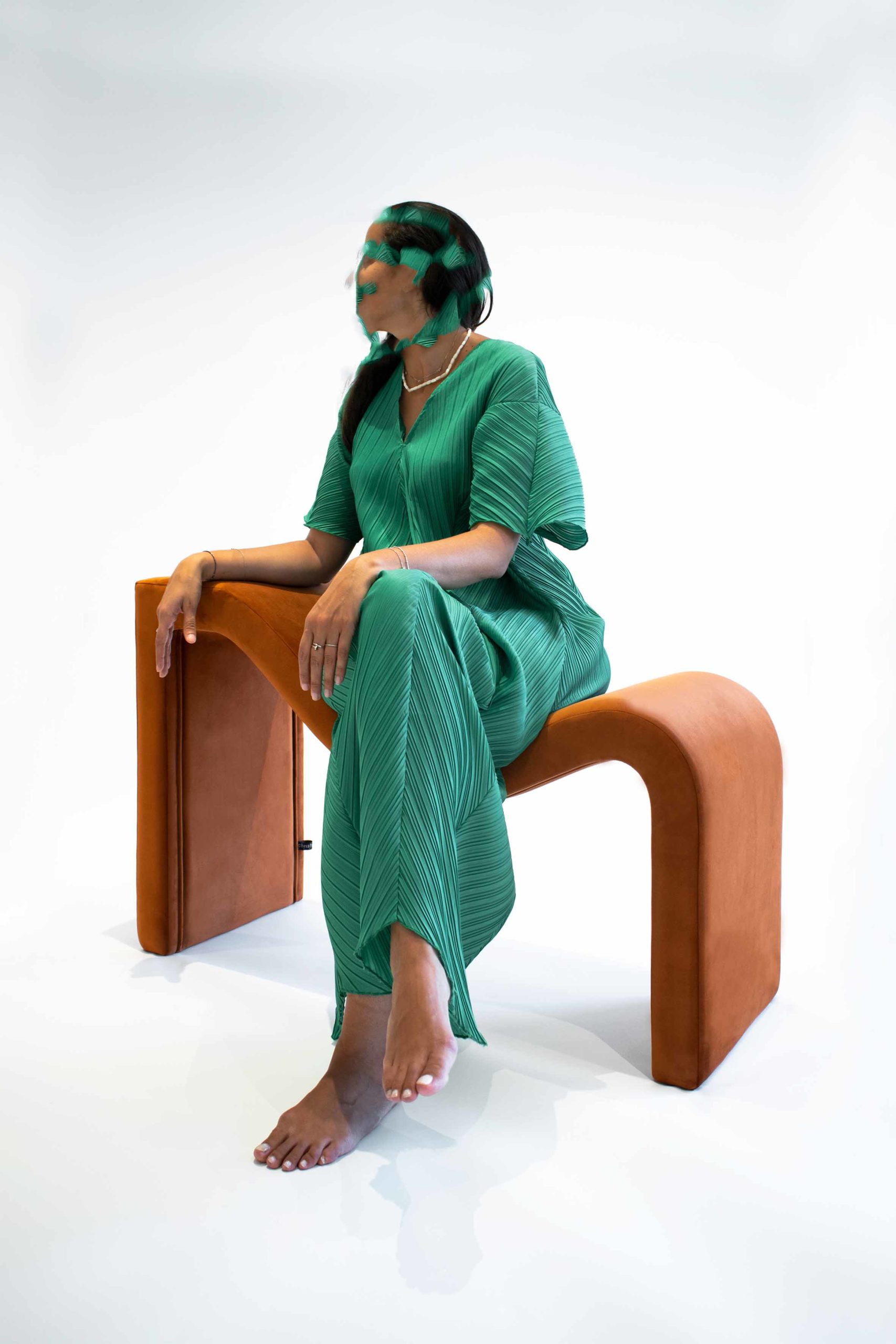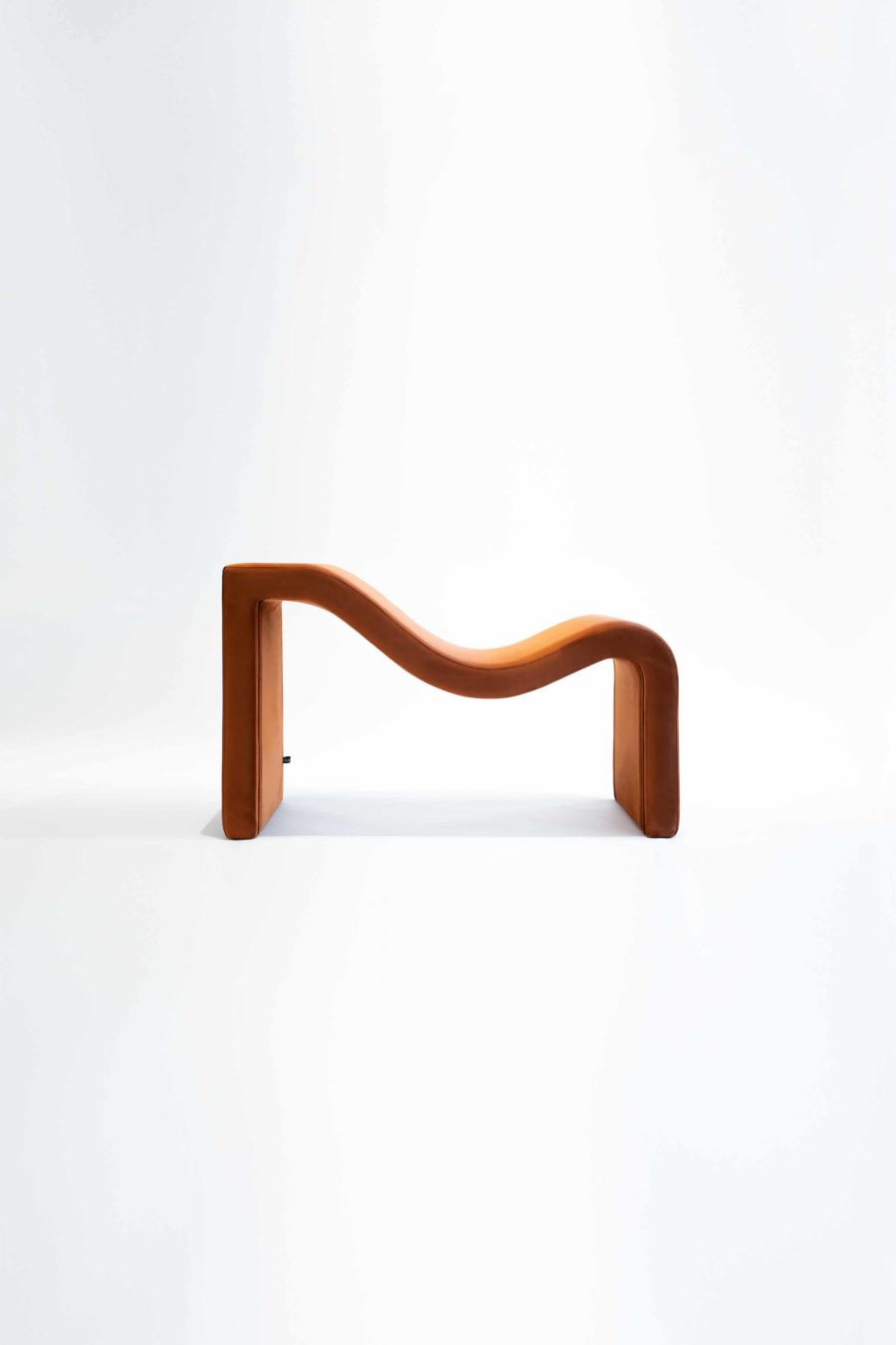Inspired by the flow of the mediterranean streams, the design of this piece follows a double sine curve that gently forms its two-seater surface. Covered in velvet plush fabric in silver, dark gray or black, the bench gives the impression and feel of a placid element adding calmness to the interior space. Its curved design makes this bench ideal in composition with both rigid fluid surroundings.