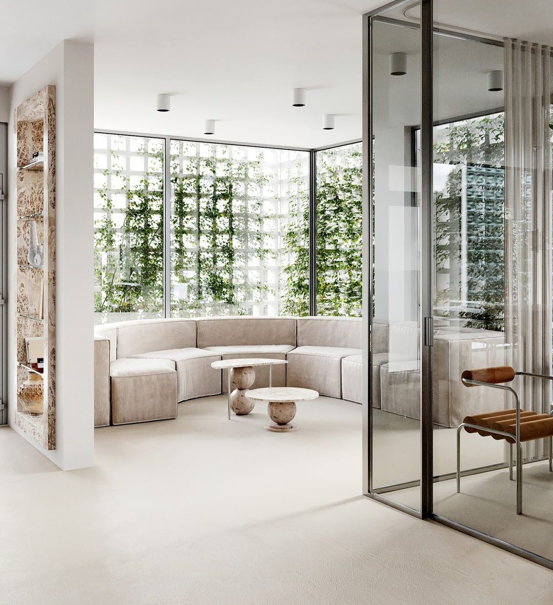 The living room decor extends to the outdoor area, featuring a small botanical yard that not only adds aesthetic appeal but also inspires and motivates the tenants to engage in gardening activities. The use of luxury couches and a lux sofa in the living room enhances the overall luxury living room experience.